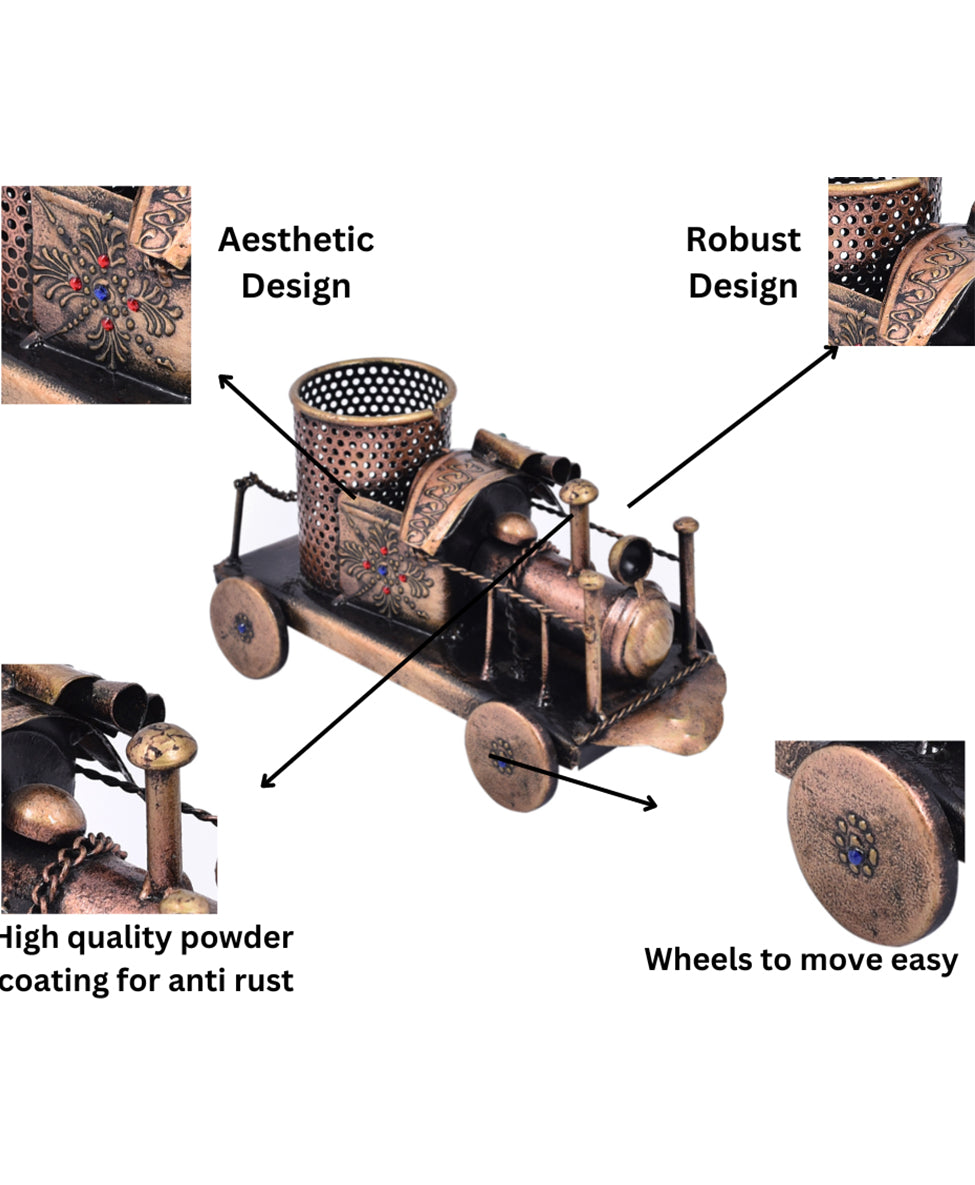Fuel your creativity with our Antique Engine Pen Stand. Crafted with timeless elegance and intricate detail, this vintage-inspired masterpiece revs up your workspace, keeping pens at your fingertips while adding a touch of nostalgia to your desk.